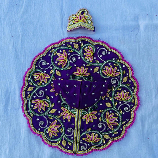 Purple Lotus Laddu Gopal Dress - Hand Embroidered